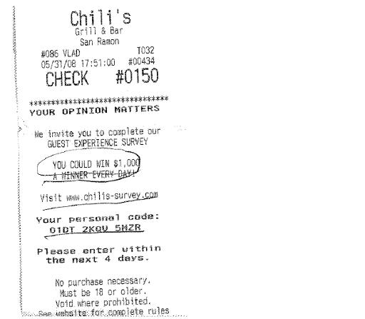 At the end of the meal, our waiter closes out our tab and he makes a point to show me a link on the receipt to an online survey. Now, I have seen these in the past and never paid much attention to them…until now.