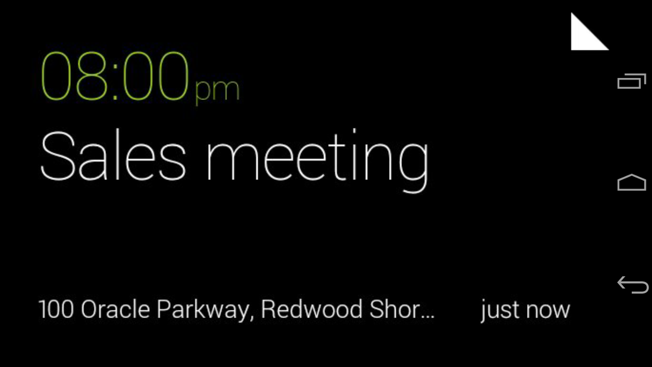 Our sales rep, let’s call her Lucy, attends lots of customer meetings. Prior to a meeting, Glass reminds Lucy of the meeting. Using Glass, she can get turn-by-turn directions and browse news about the company she’s visiting.