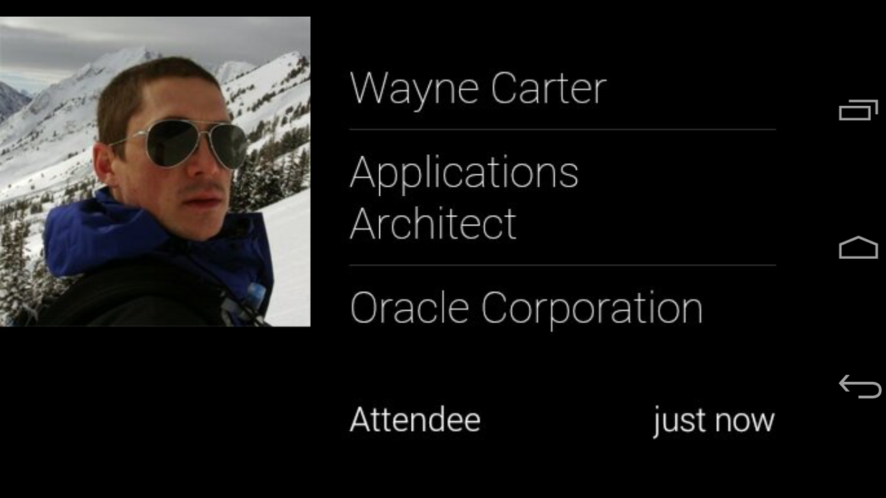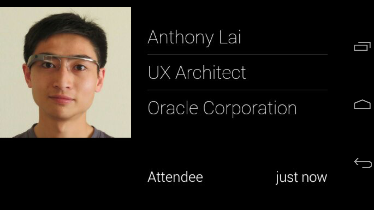 Anyway, to reiterate, this isn’t product. It’s just a fun project that Anthony threw together for me to show at Kscope. So, if you’re at Kscope and want to check out Google Glass and this demo, find Jeremy and me Monday at 8:30 AM. Here are our session details: