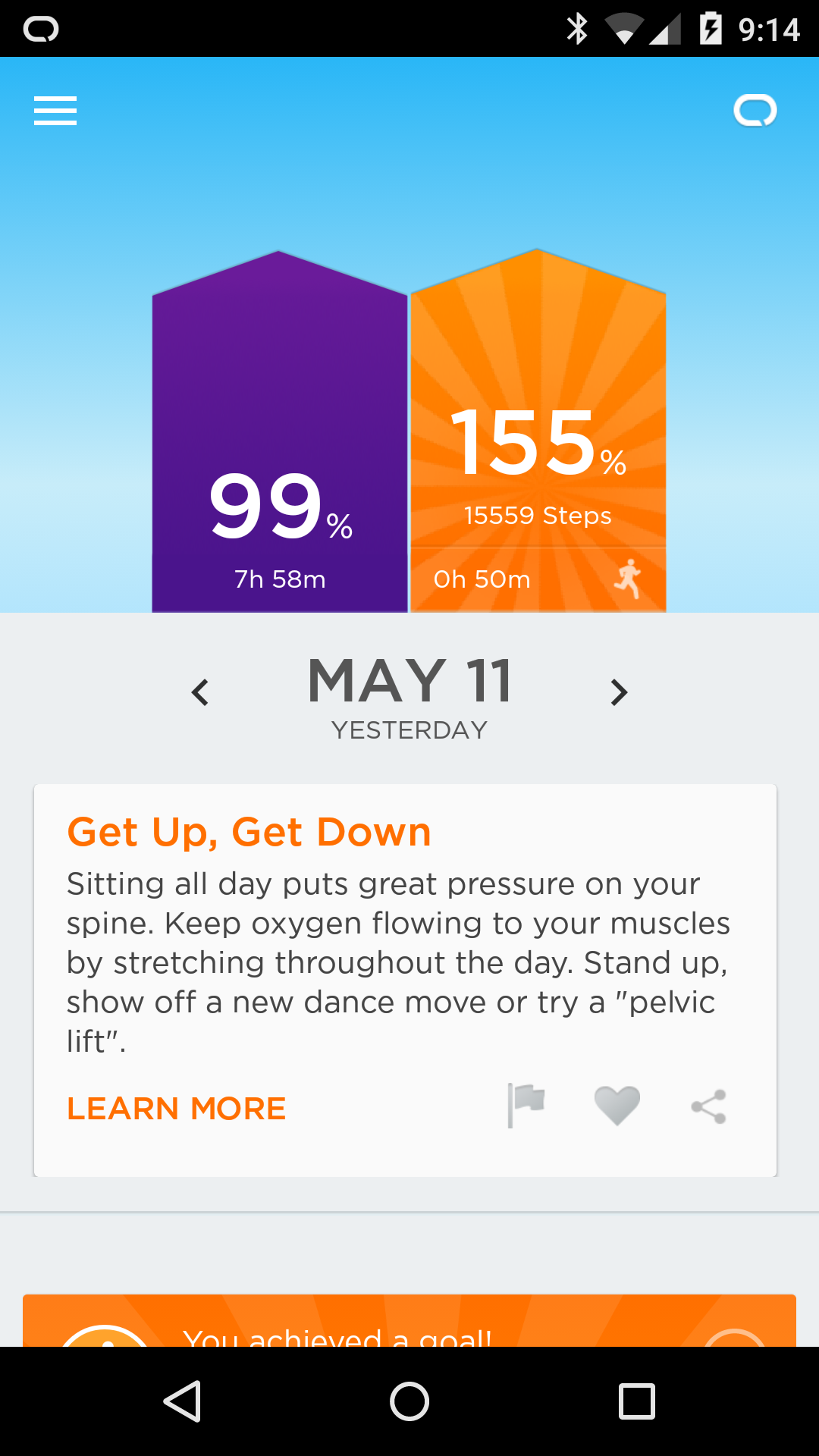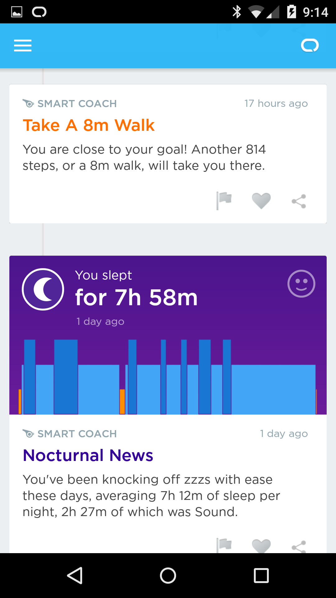 The app is quite nice, both visually and informationally. I really like the stream approach (vs. a dashboard), and again, Smart Coach is nice. Each day, I checked my sleep data and read the tips provided, and yeah, some were interesting.