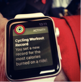 Testing out the Apple Watch in Oracle HQ’s Fitness Center spin class. On the road is another matter.