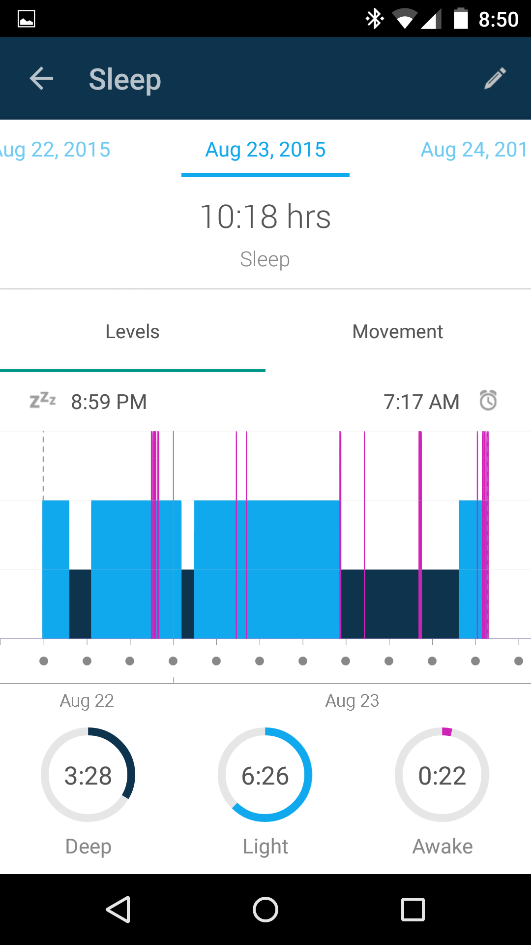 Luckily, I found the band and app auto-detect sleep, a huge save.