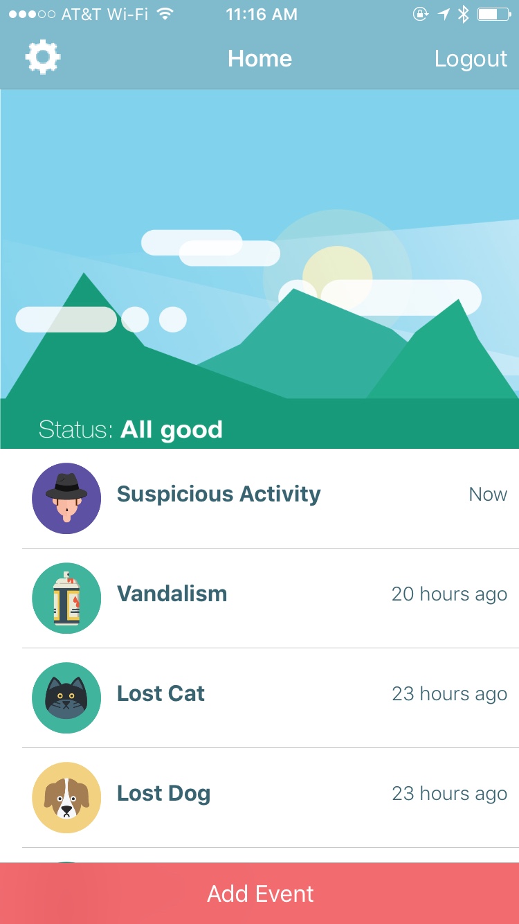 We also created an app, so residents could get notifications as well as report different events, which brings me to our second use case.